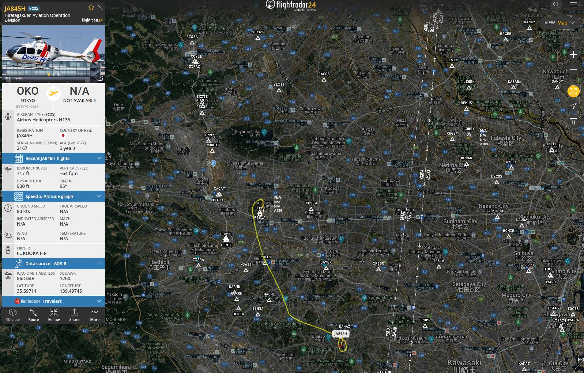 At first glance it appears the flight departed from OKO/RJTY, but this doesn't match with the flight path on the image. Looking closer at the origin of the flight path, it appears it originated from Tachikawa Airfield.