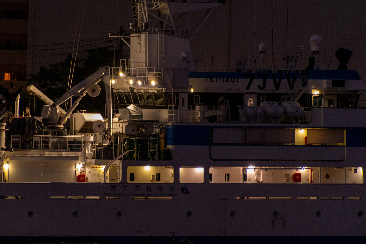 According to the writing on the side of the ship, it belongs to the Tokyo University of Marine Science and Technology. By searching for ships operated by the university, the following can be found: